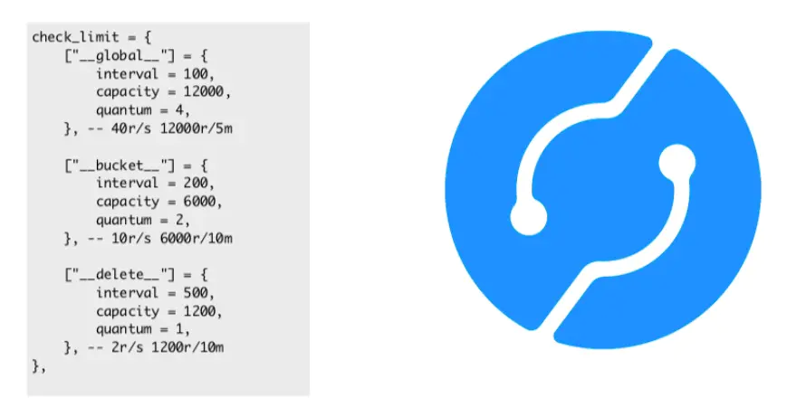 有了 OpenResty,可以做一些更加有意思的事情。比如我们有多台机器,想把限制的状态共享,又拍云之前开放了一个简单的模块叫 lua-resty-redis-ratelimit(resty.redis.ratelimit),顾名思义就是把这个状态扔到 Redis 保存。它和 Nginx limit req 以及 resty.limit.req 一样,都是基于漏桶算法对平均请求速率进行限制。不同的是,该模块将信息保存在 Redis 从而实现多 Nginx 实例状态共享。