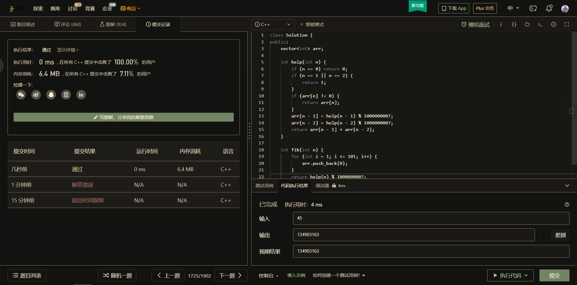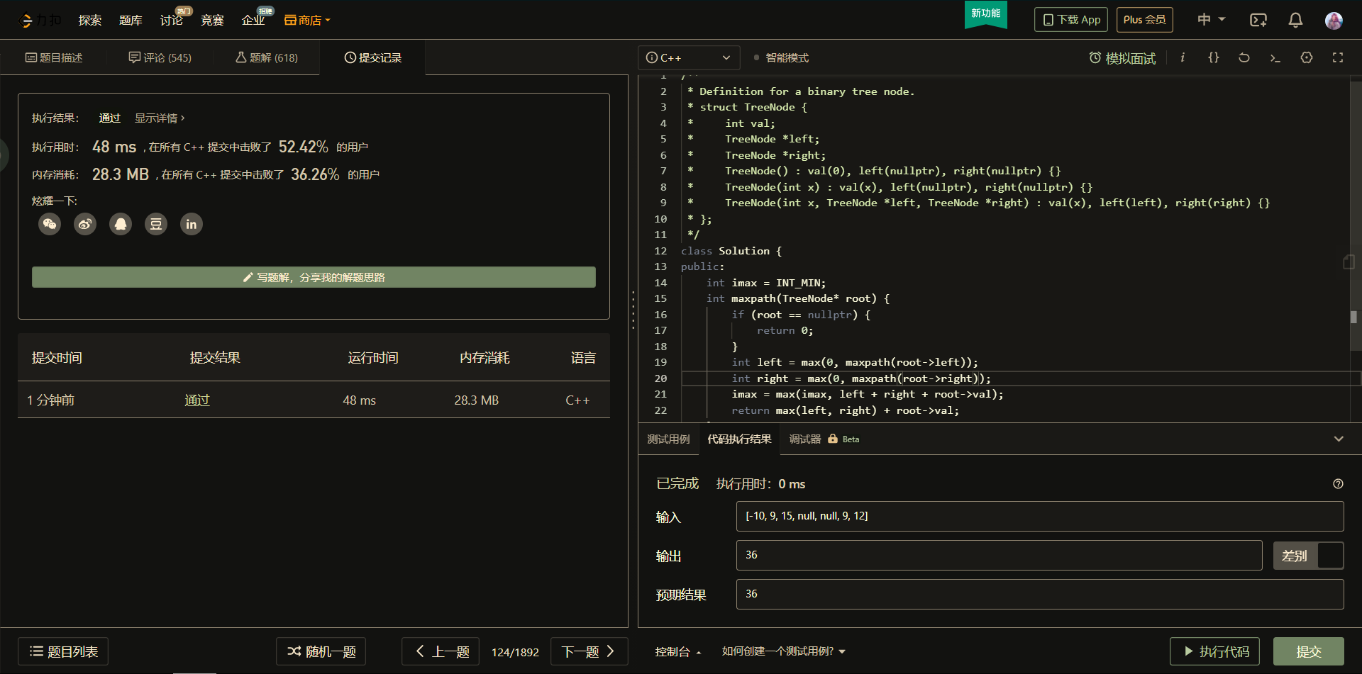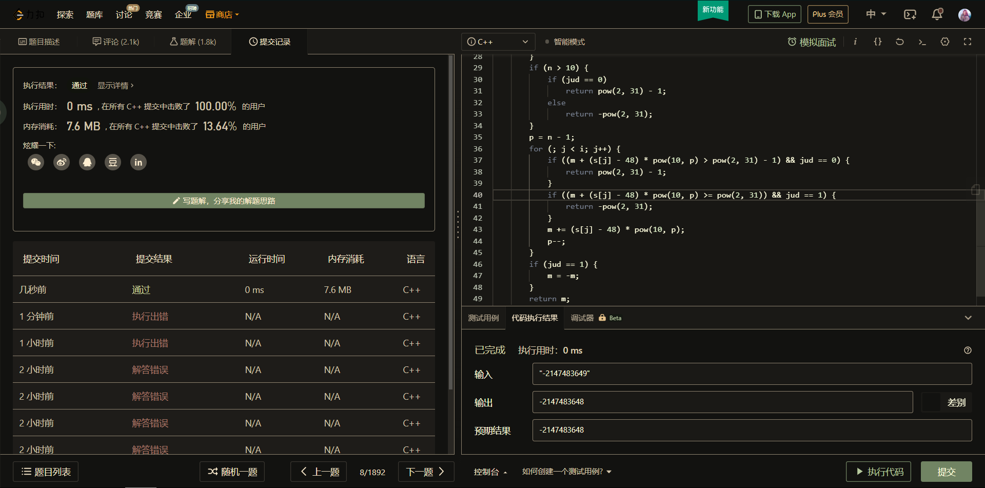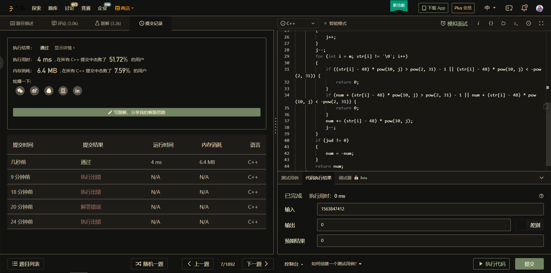 leetcode的第50题,正确率也从之前的30%多涨到47%,一边学算法一边刷leetcode确实掌握了不少东西,比之前硬刷洛谷收货颇多