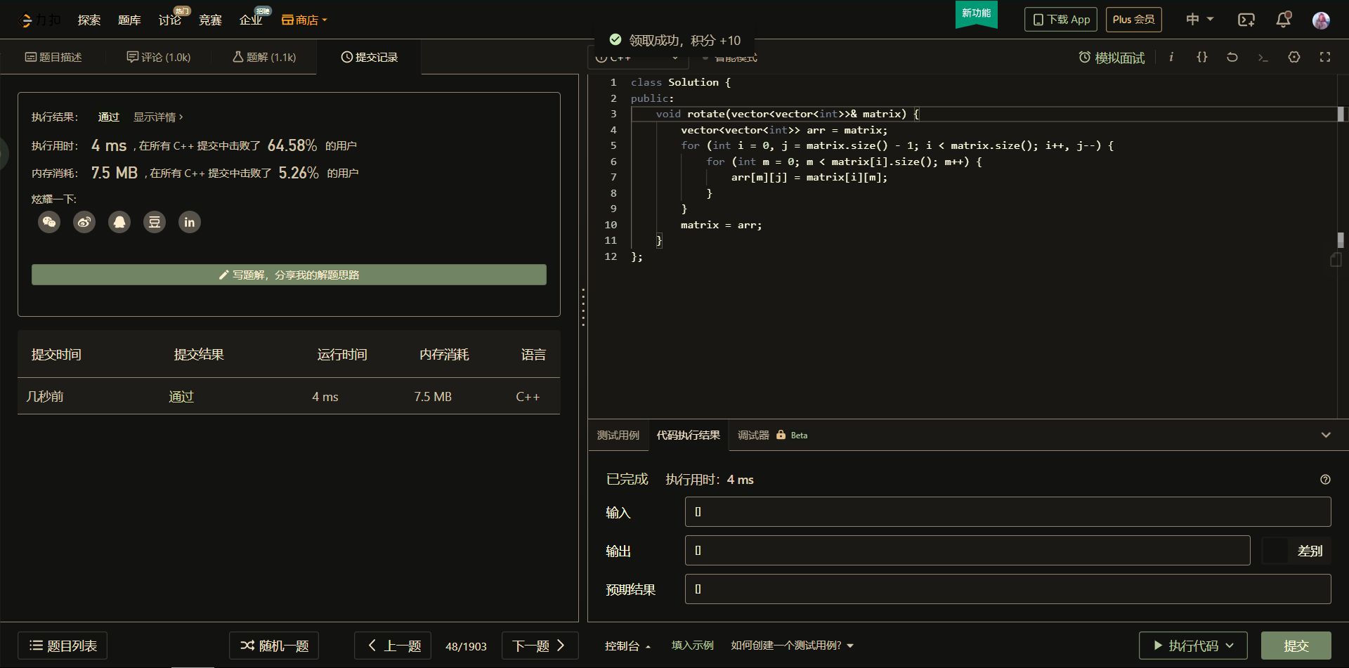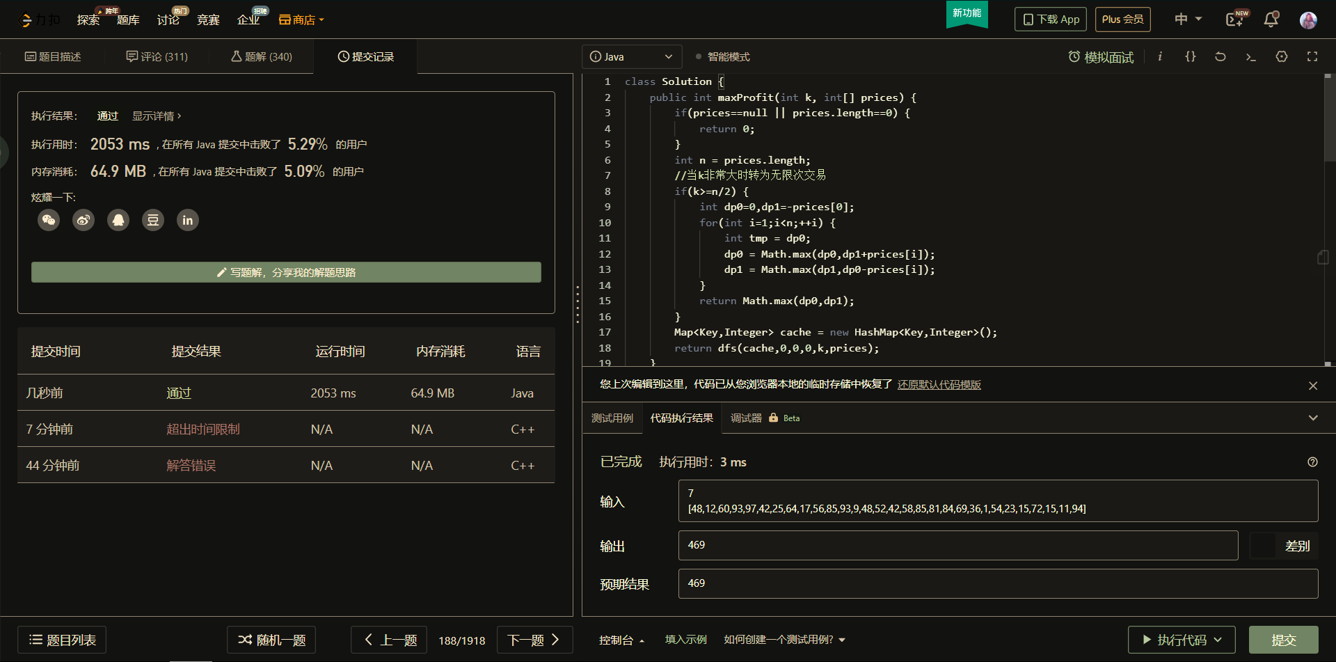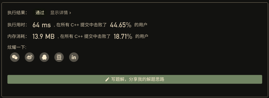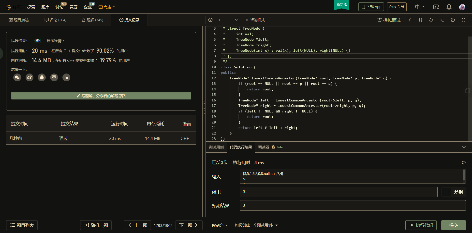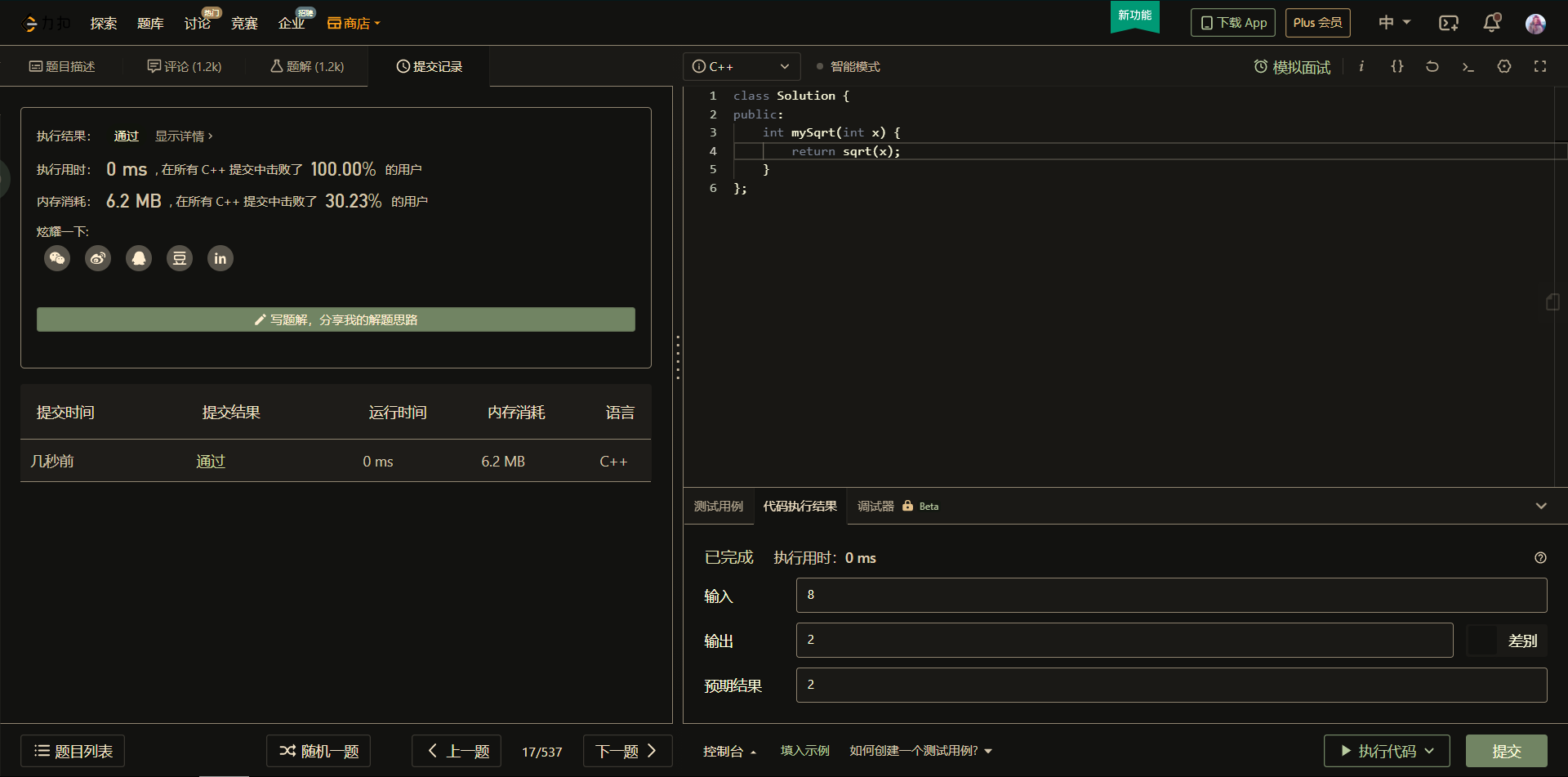 leetcode的第50题,正确率也从之前的30%多涨到47%,一边学算法一边刷leetcode确实掌握了不少东西,比之前硬刷洛谷收货颇多