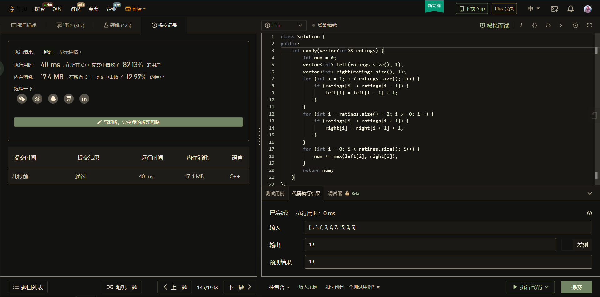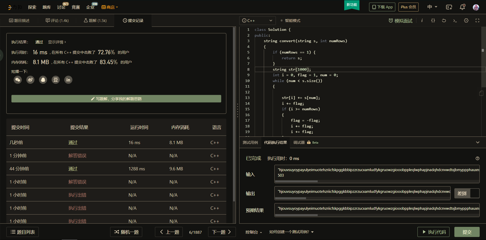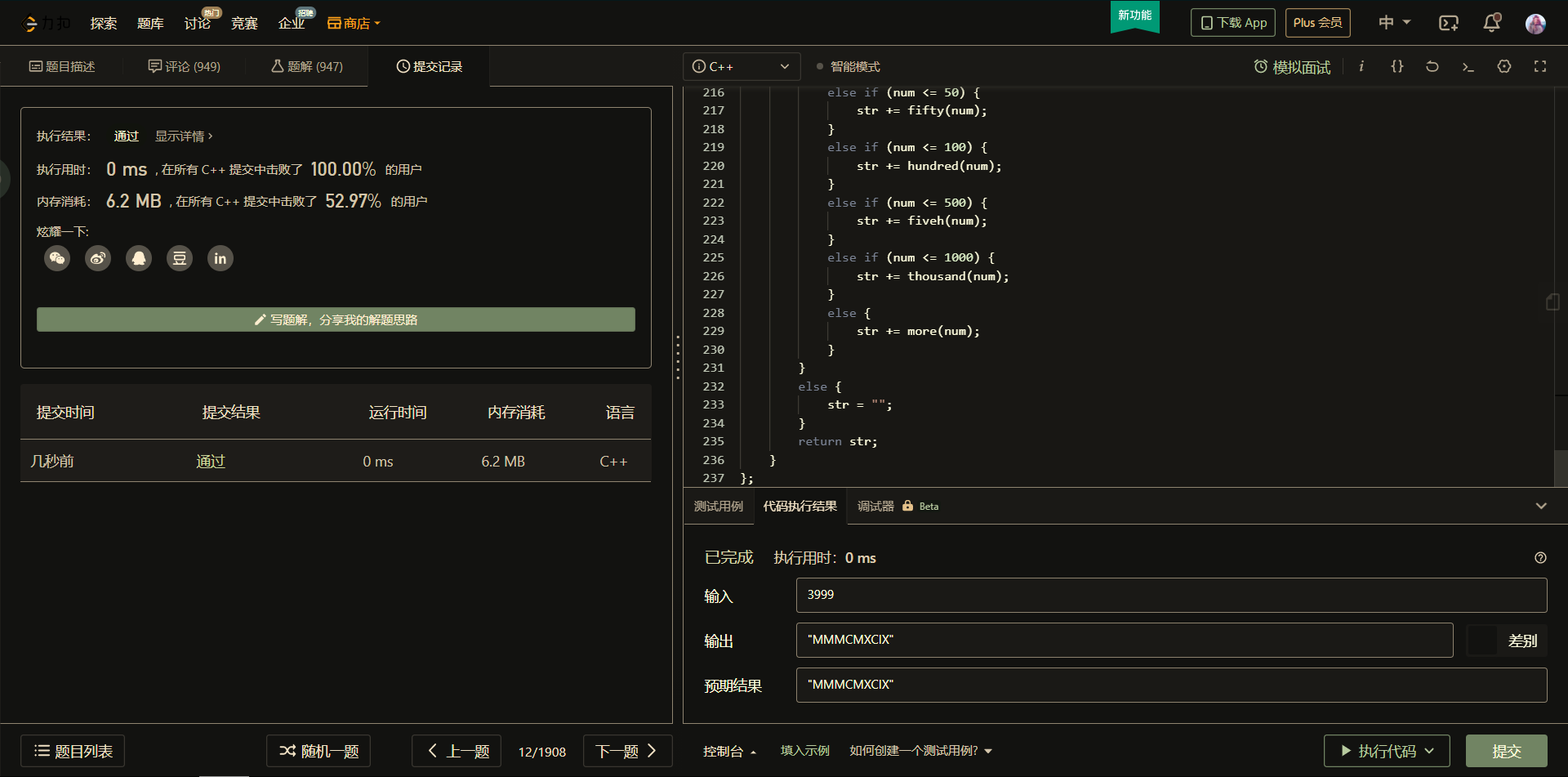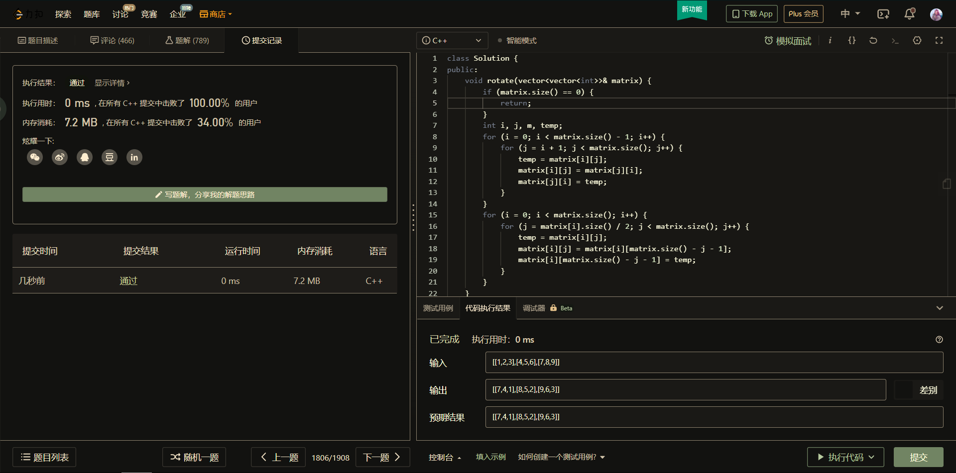 leetcode的第50题,正确率也从之前的30%多涨到47%,一边学算法一边刷leetcode确实掌握了不少东西,比之前硬刷洛谷收货颇多