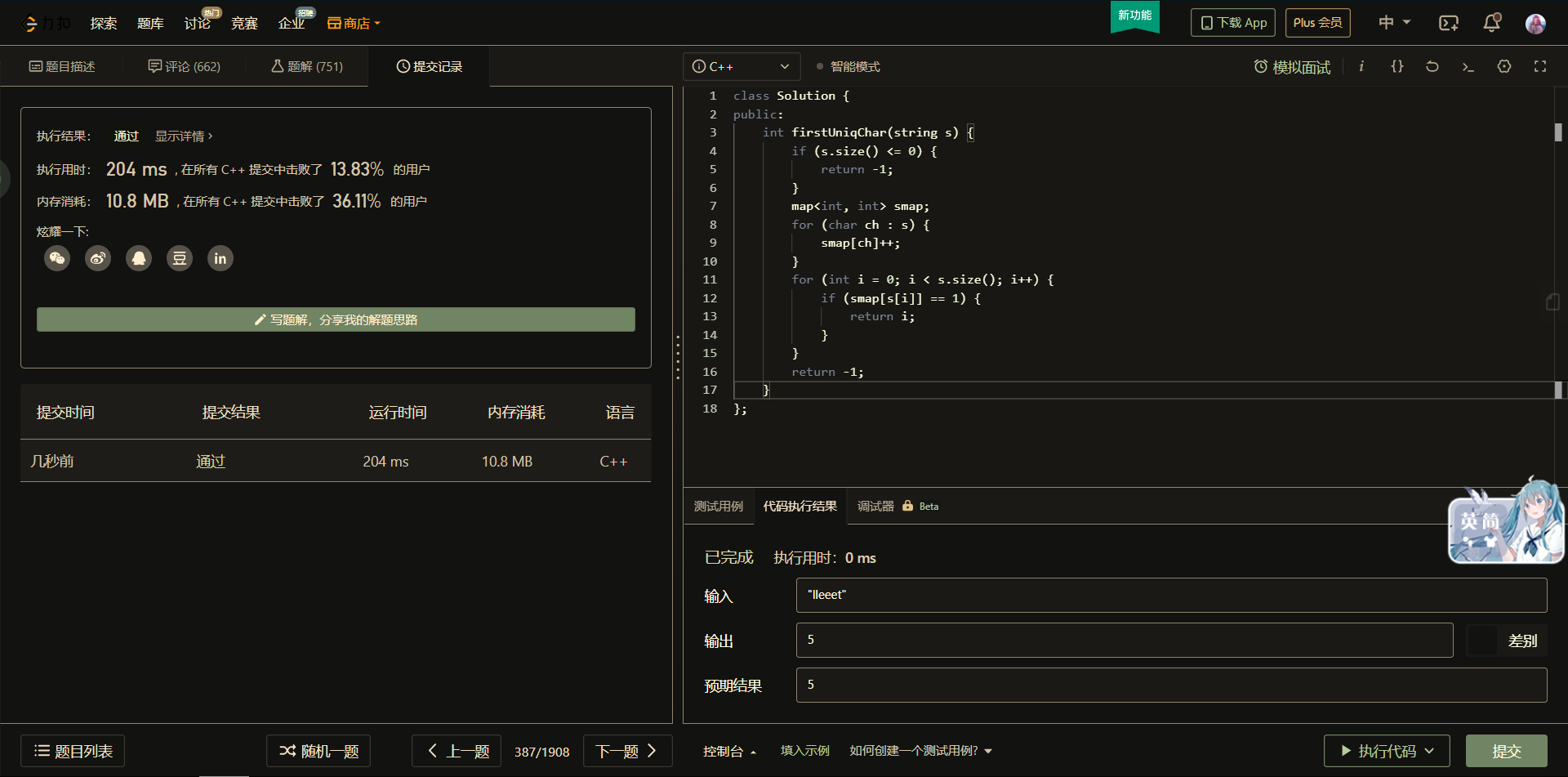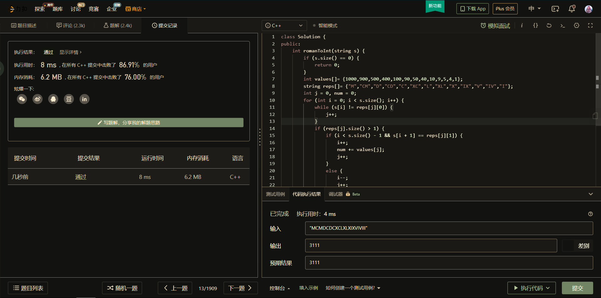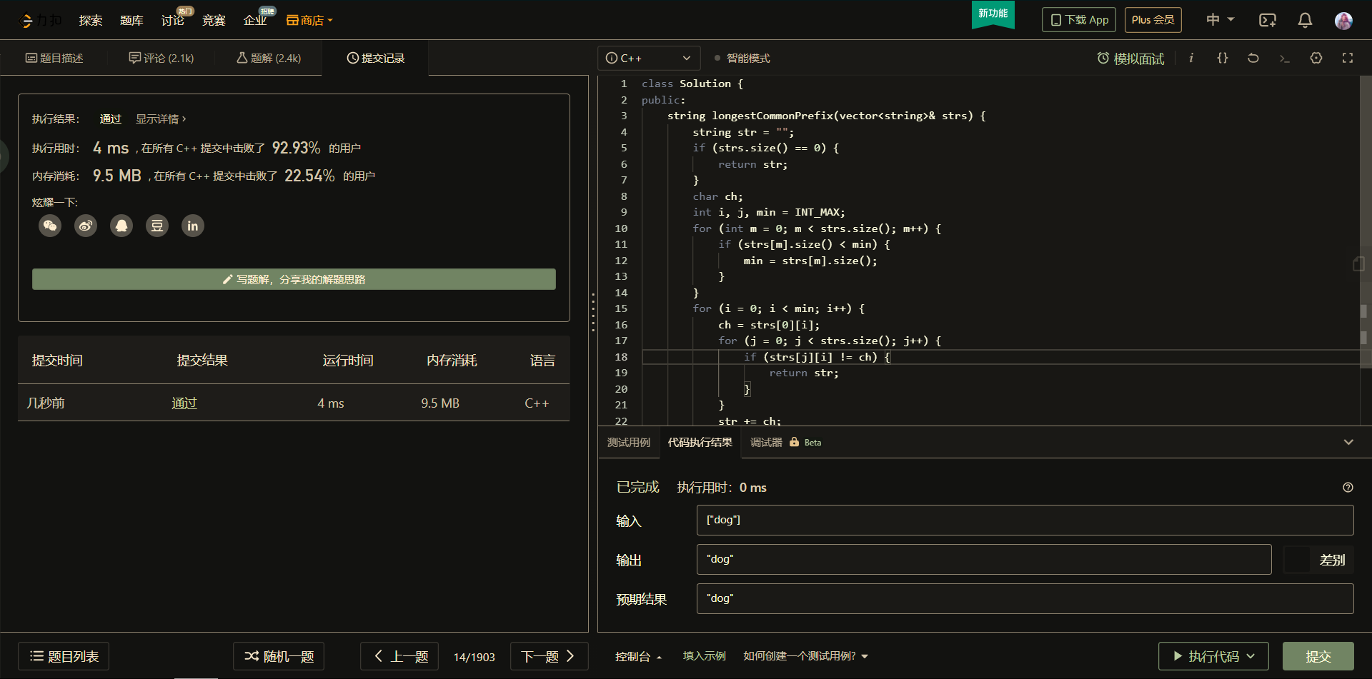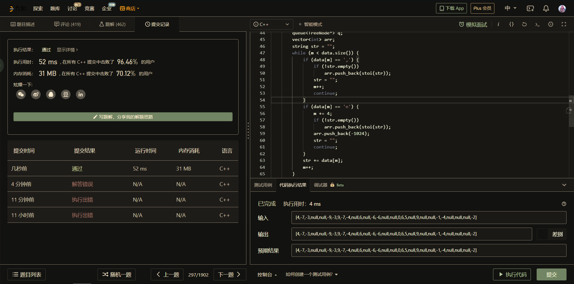 leetcode的第50题,正确率也从之前的30%多涨到47%,一边学算法一边刷leetcode确实掌握了不少东西,比之前硬刷洛谷收货颇多