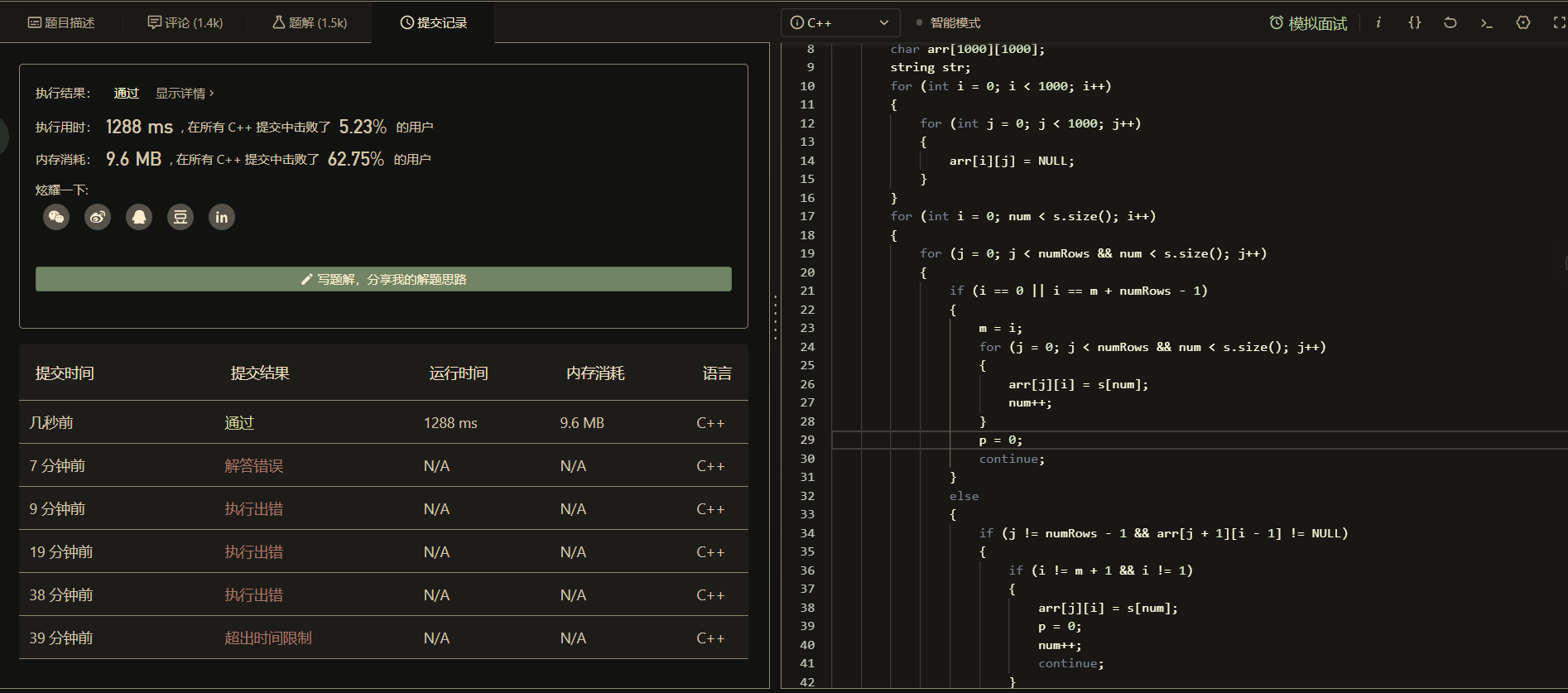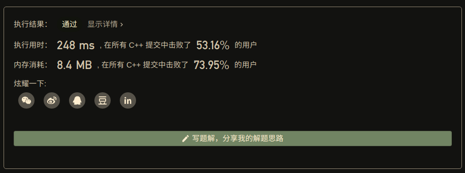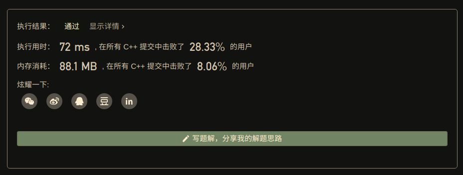 最后一个用例1288ms过了,当一道题不涉及算法时,我的代码就开始不优美了虽然本来也不优美?