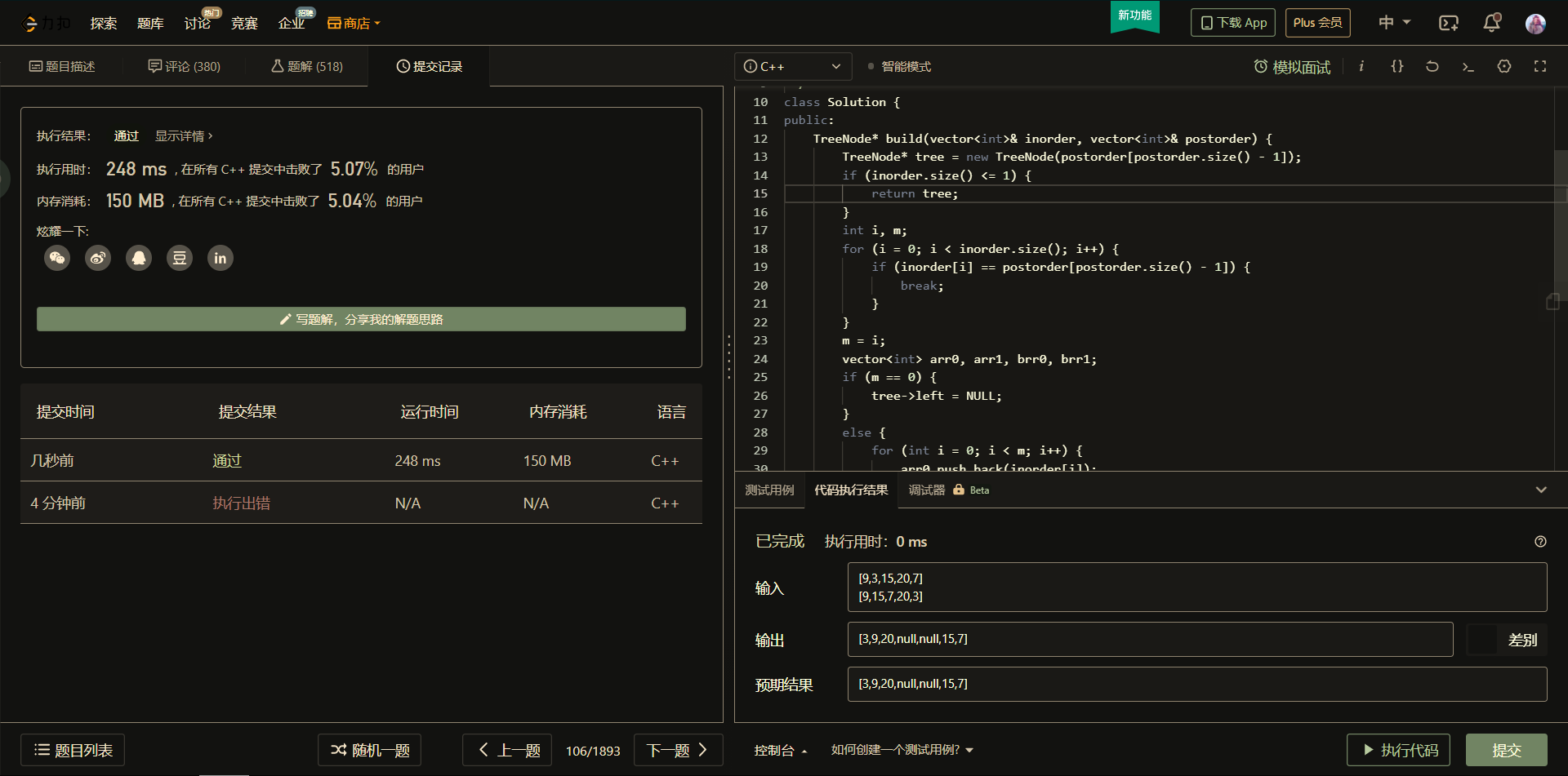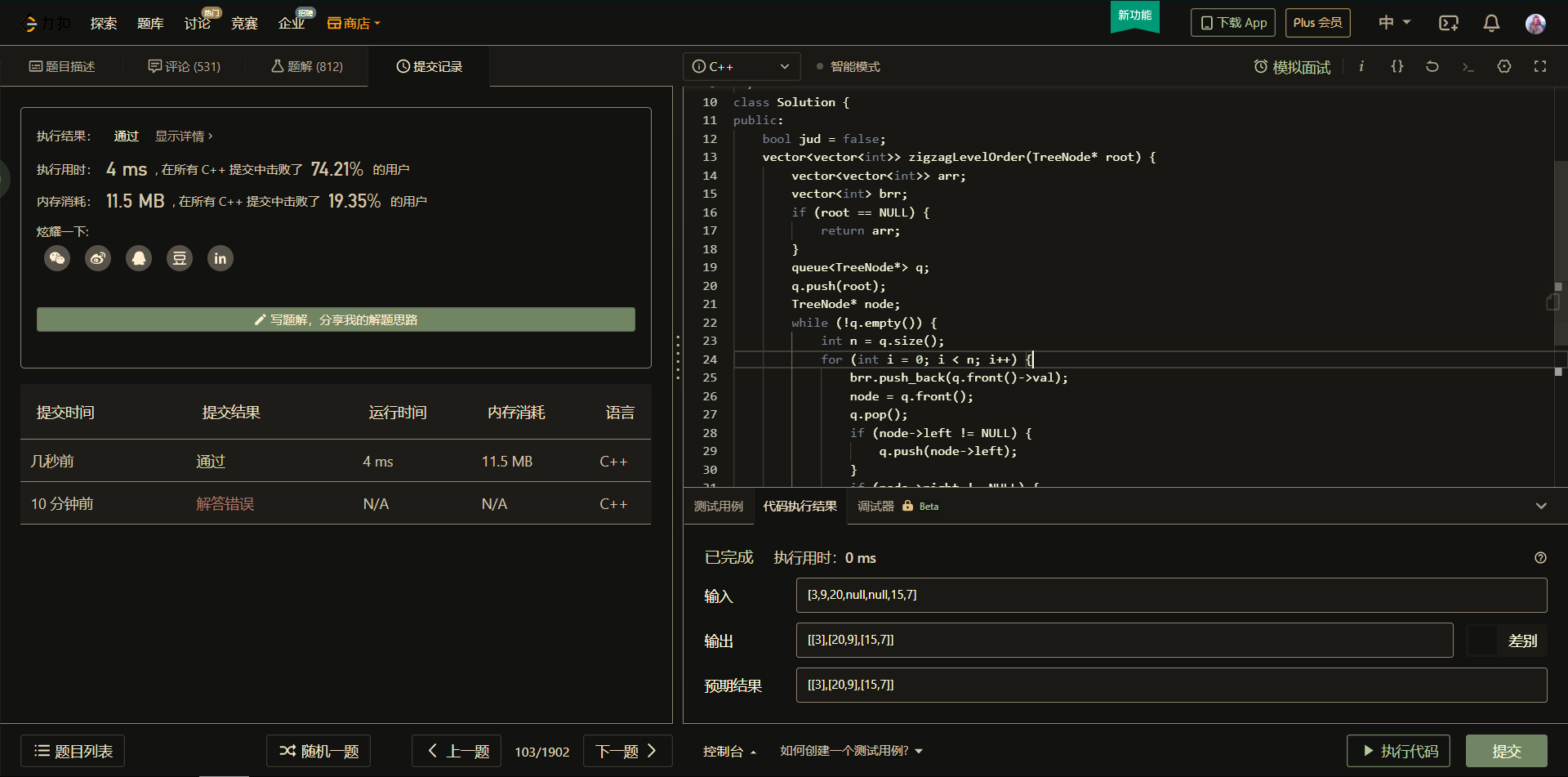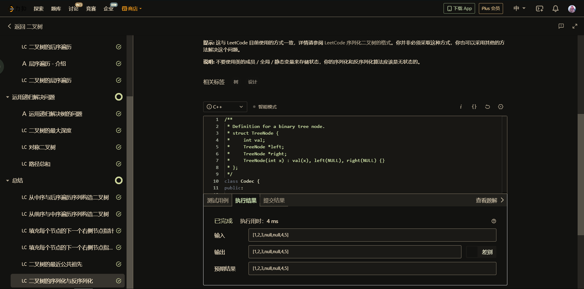 本来想昨天把二叉树专题最后一题给A了,但是昨天感觉脑子不太行了,留到今天才完成。