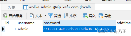 到数据库找到wolive_admin表