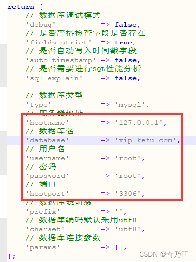 修改/config/database.php