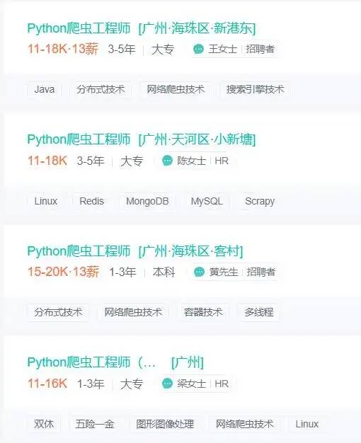 除了北上广深杭州等一线城市,其实Python在二线城市的表现也非常亮眼。像武汉、西安、成都等地的平均薪资都能达到11000元以上。这也是因为Python的应用广泛、就业方向多才使得薪资不断上涨。