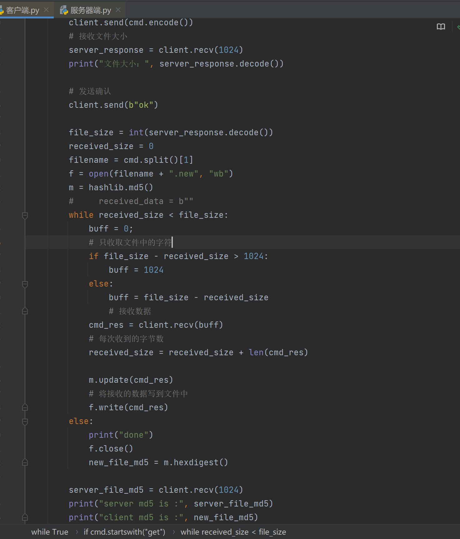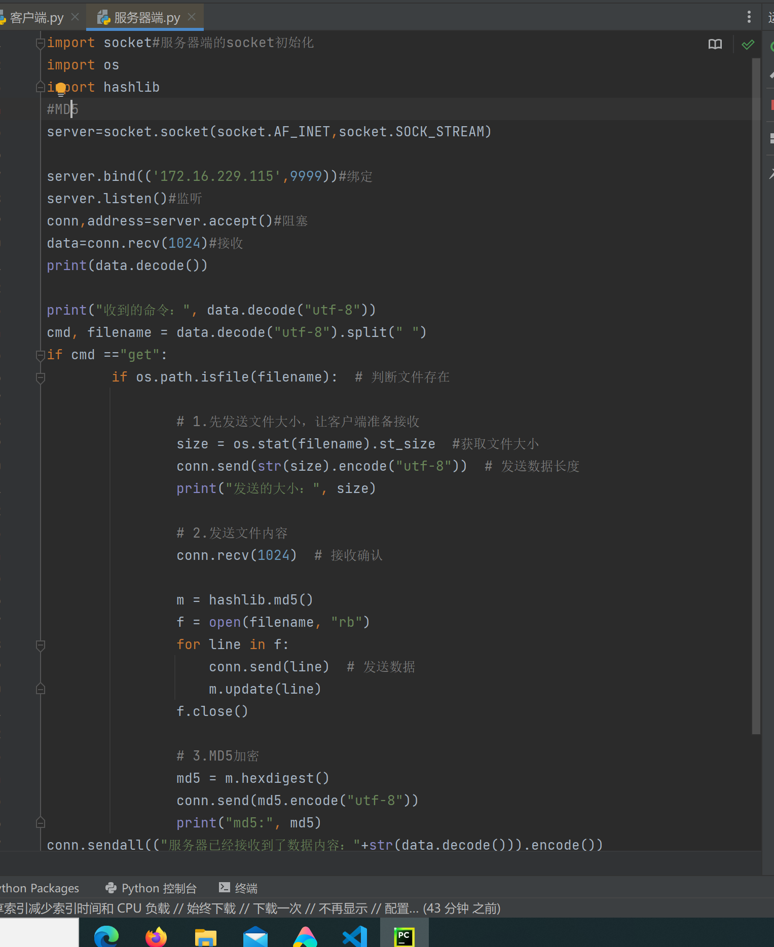 2.1创建服务端和客户端,选择一个通信端口,用Python语言编程实现通信演示程序;