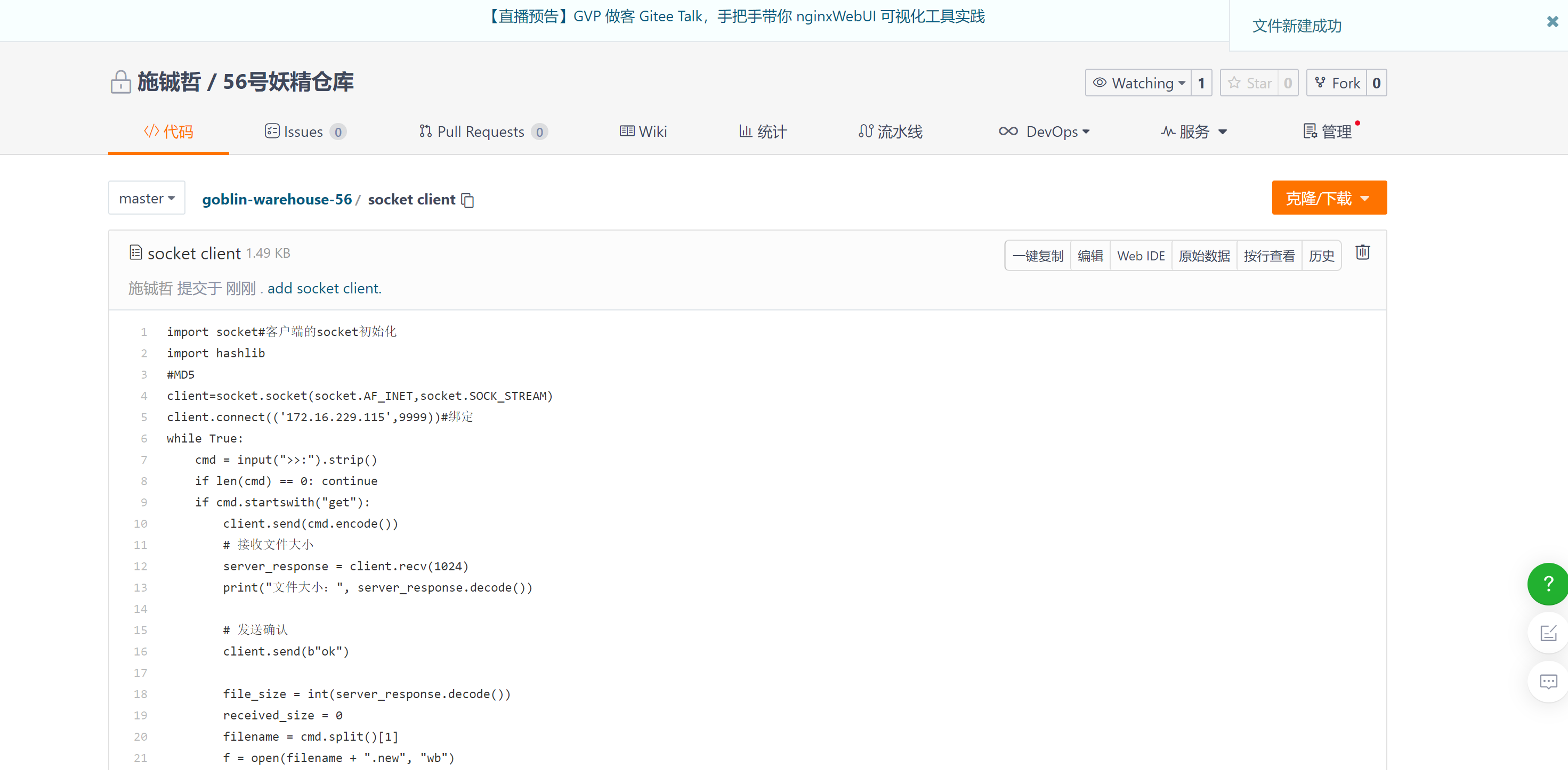 2.3程序代码托管到码云。