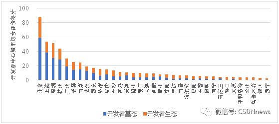 其中引领城市为北京,其开发者中心城市综合评价得分达到 88 分,大幅领先排名第二的上海。