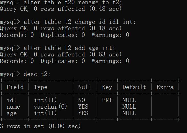 eg:alter table t1 add age int;