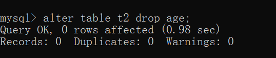 eg:alter table t1 drop age2;