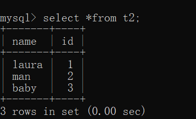 | t2 | CREATE TABLE `t2` (