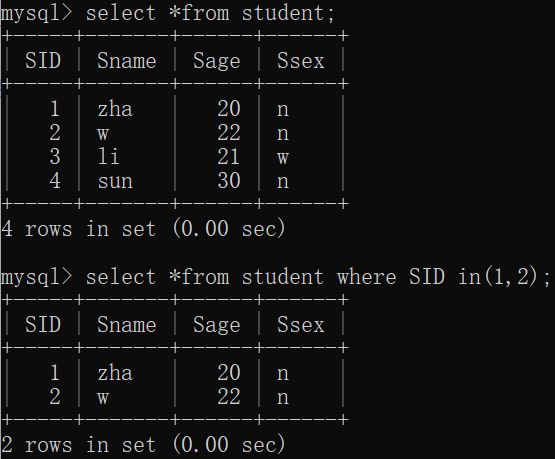 eg:select * from Student where SID in (1,3,5);