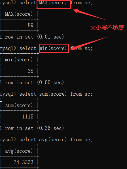 5.0 聚合函数:将某一列数据作为一个整体,进行纵行计算。(count. max. min.sum.avg)