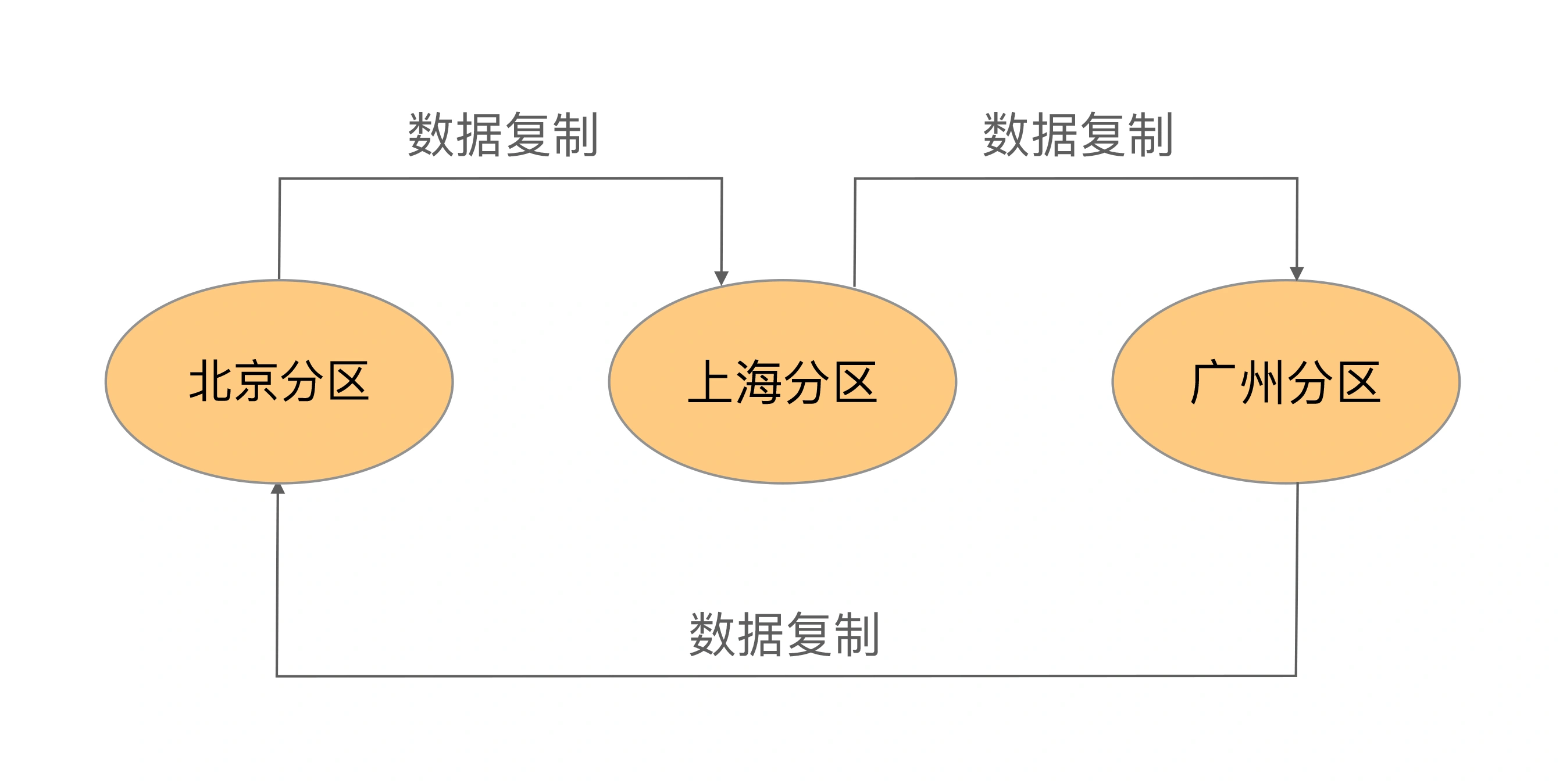 通常情况下,洲际分区主要用于面向不同大洲提供服务,由于跨洲通讯的网络延迟已经大到不适合提供在线服务了,因此洲际间的数据中心可以不互通或者仅仅作为备份;国家分区主要用于面向不同国家的用户提供服务,不同国家有不同语言、法律、业务等,国家间的分区一般也仅作为备份;城市分区由于都在同一个国家或者地区内,网络延迟较低,业务相似,分区同时对外提供服务,可以满足业务异地多活之类的需求。 - 复制规则