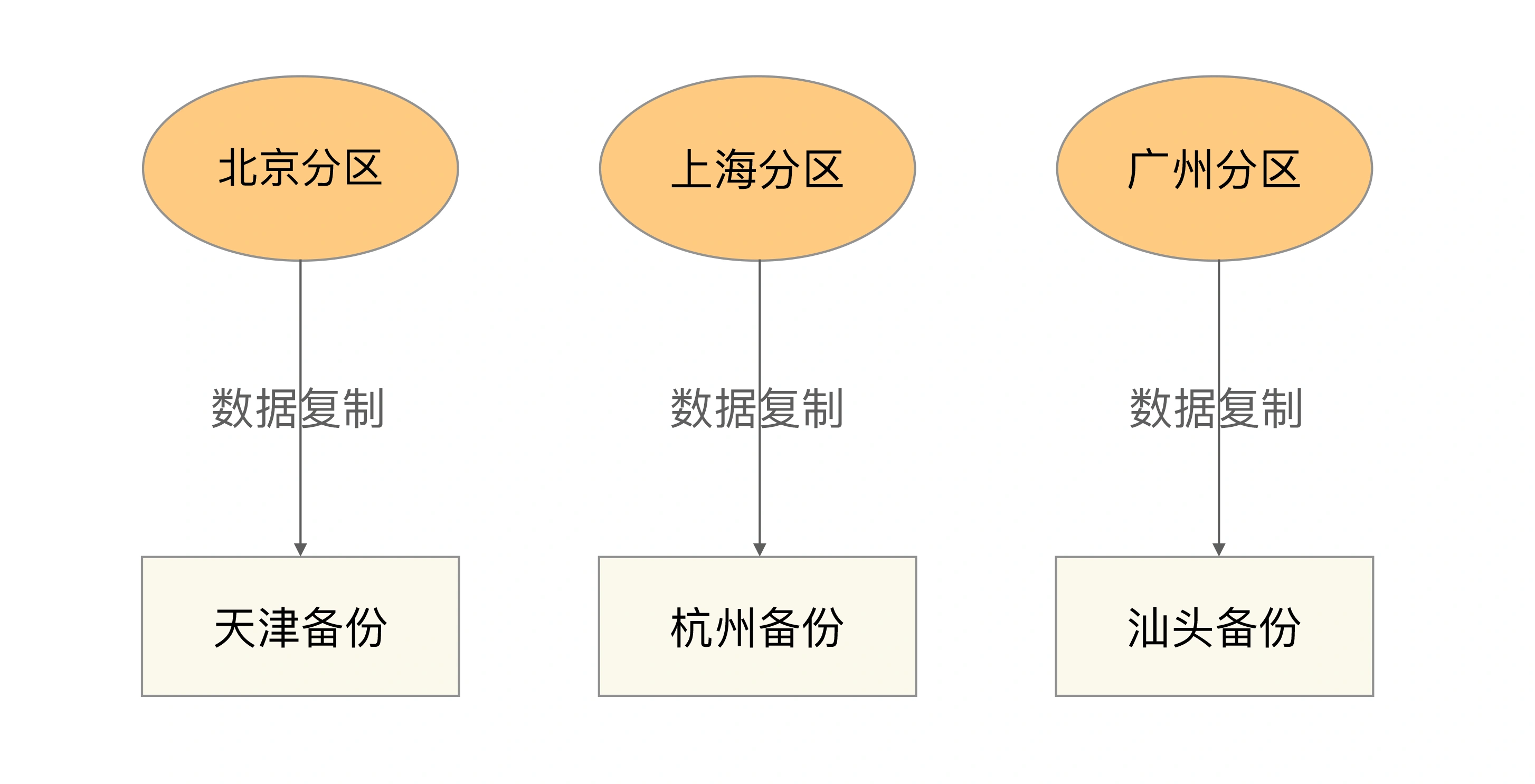 数据分区指将数据按照一定的规则进行分区,不同分区分布在不同的地理位置上,每个分区存储一部分数据,通过这种方式来规避地理级别的故障所造成的巨大影响。采用了数据分区的架构后,即使某个地区发生严重的自然灾害或者事故,受影响的也只是一部分数据,而不是全部数据都不可用;当故障恢复后,其他地区备份的数据也可以帮助故障地区快速恢复业务。
