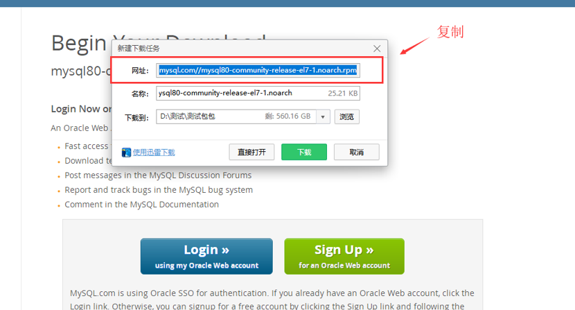 二、下载和安装mysql源,wget 加上刚刚复制的地址