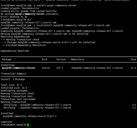 yum -y localinstall mysql80-community-release-el7-1.noarch.rpm