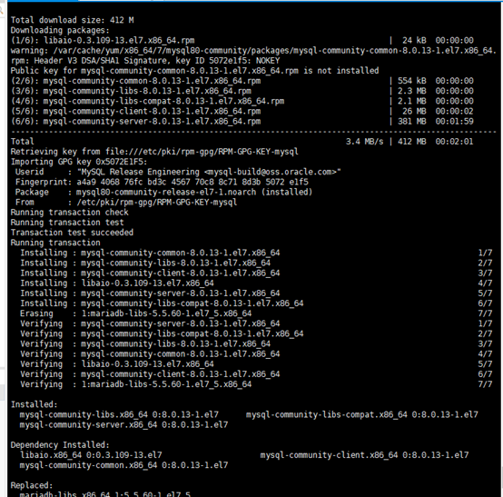 yum -y install mysql-community-server,下载的东西比较多要稍微等会;