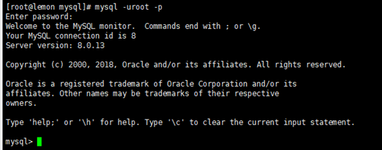 七、通过 mysql -uroot -p 进入数据库登陆界面,输入刚刚查到的密码,进行数据库的登陆,复制粘贴就行,MySQL 的登陆密码也是不显示的