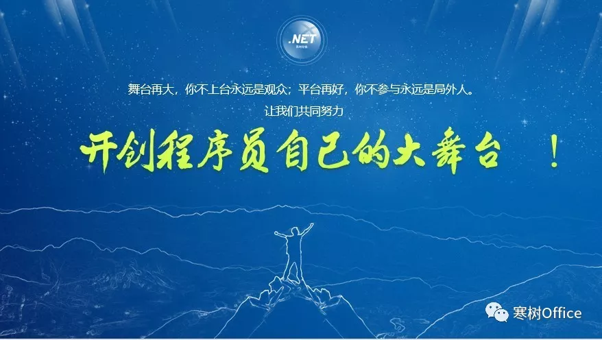 成功的故事荡气回肠,失败的故事千回百转,但是你不去追求与偿试,你永完不会知道成功的原因失败的原因是什么,人生一辈子也就三万天,如果每天糊里糊涂的过去了,若干年后要连故事都没得讲。如果你还是孤单的程序狗,那么加入中国.NET俱乐部这个大家庭,我们一起书写最精彩的故事。