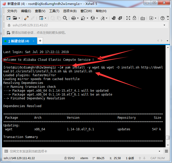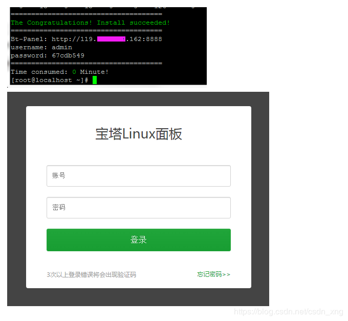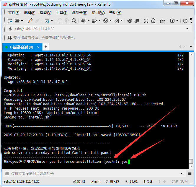 四:确认是否要安装宝塔,输入y 或者 yes 回车等待安装完即可