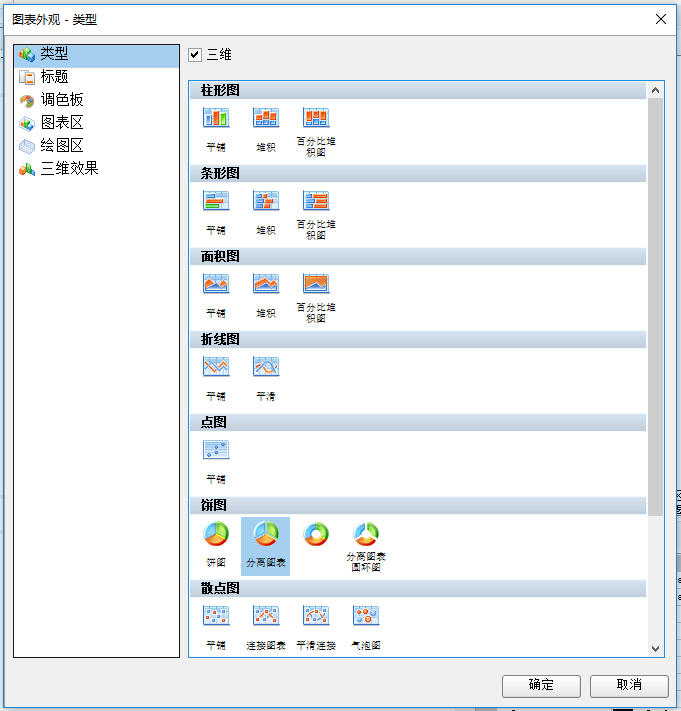 我们使用ActiveReports报表后,开发图表更加简单方便,只需拖拽一个图表控件,然后给图表数据分组、类型分组、子分组都选择好数据源里提前配置好的字段即可,简单易用,完全不需要再考虑怎么绘制各种图形、文字、直线,而且这个图表控件有各种可视化展示类型: