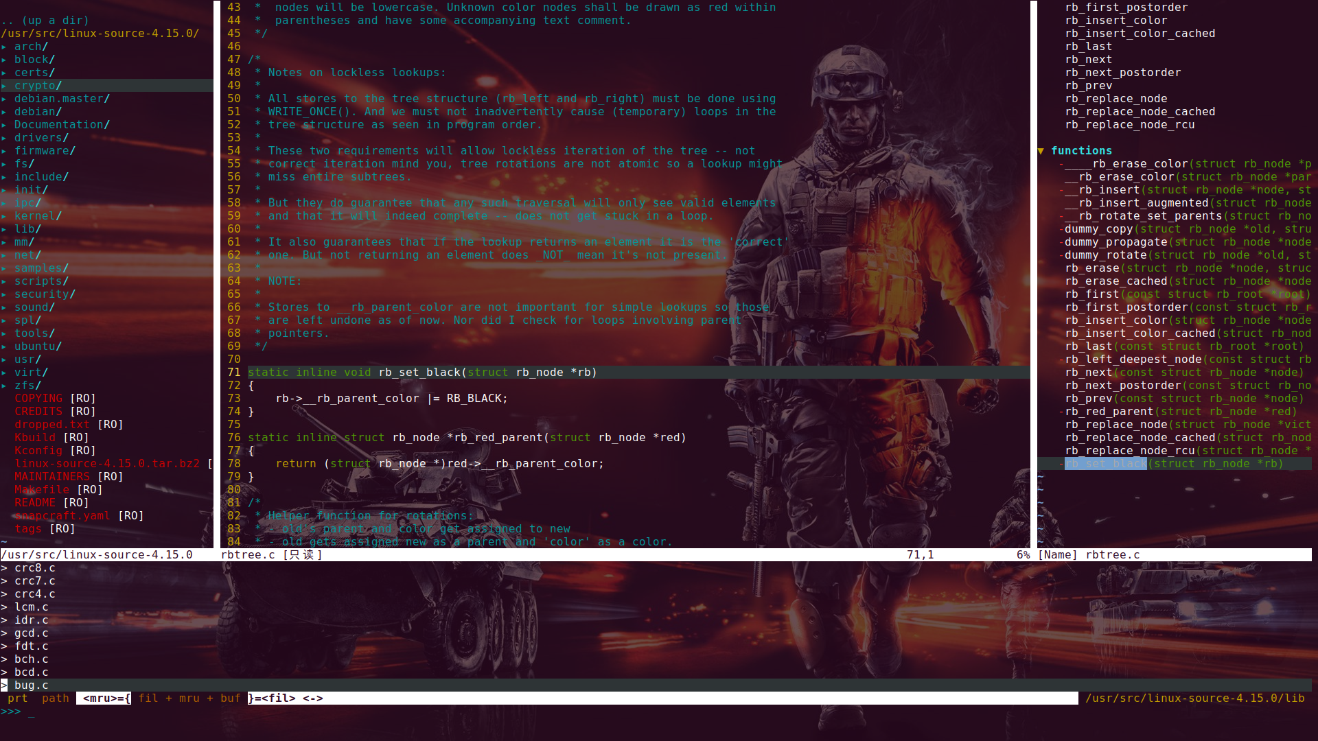 有时候,文档并不是万能的,像某些软件的文档不够完善啦,或者我们自己的需求超越了文档描述的范畴啦等情况。这时,我们可以直接参看软件的源代码,这就是开源系统的优势。源代码有各种各样的,有 C 语言的,也有 Bash 脚本语言的,还有 XML、CSS、JavaScript 的。这篇随笔的第一张截图,展示的就是使用 Vim 阅读 Linux 内核的源代码。