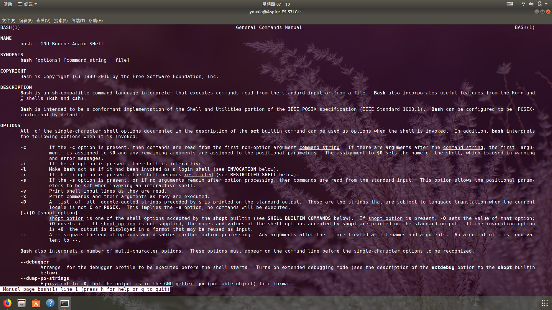 要善于阅读软件的文档。在 Linux 中,阅读文档非常方便,几乎所有命令,都可以使用man命令来查看它的命令行参数。同样,对于复杂的软件,使用man也可以学到非常系统的知识。如下图,我在学习 Bash 的时候,使用man bash命令阅读它的官方文档: