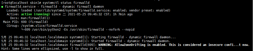 查看防火墙是否开启 systemctl status firewalld