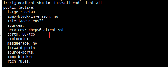 启动防火墙后,默认没有开启任何端口,需要手动开启端口。nginx默认是80端口