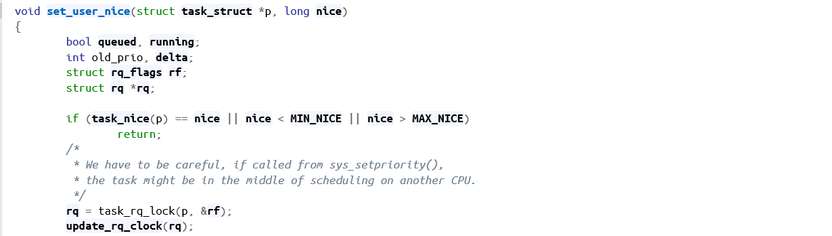 首先要明确,我们要实现一个什么样的功能,根据内容要求可知,这个系统调用需要具备对指定进程的nice值的修改及读取的功能,同时返回进程最新的nice值及优先级prio。
