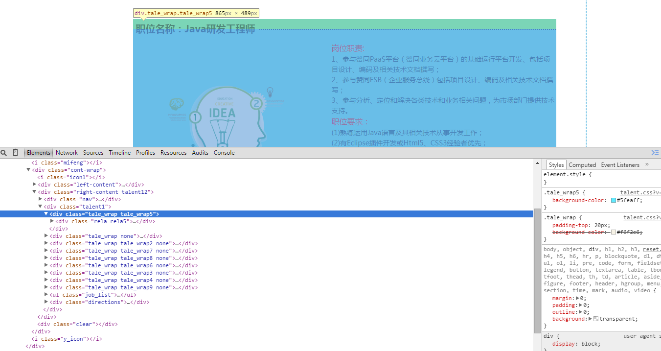 文字代码使用dl>dt>dd结构,由于职位名次标题使用的是定位,所以不能使用overflow来控制显示还是隐藏,由于overflow为hidden是表示超出内容部分就不显示了。可以使用