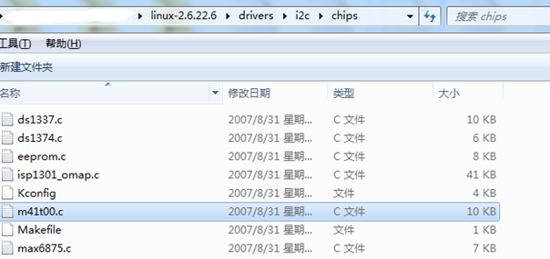 里面保存I2C设备驱动相关的文件,如下图所示,比如m41t00,就是RTC实时钟