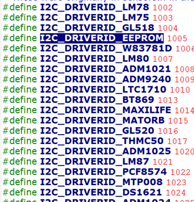 如下图所示, eeprom_driver结构体的ID成员在i2c-id.h中,里面还定义了大部分常用I2C设备驱动的设备ID