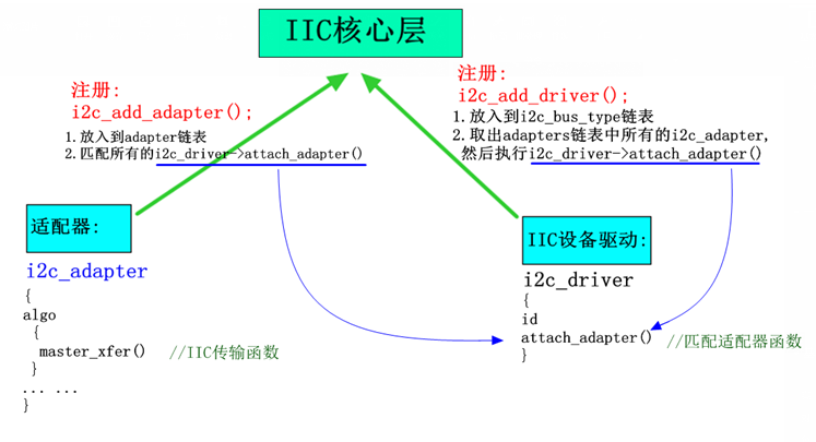 所以适配器和iic设备驱动最终注册框架图如下所示: