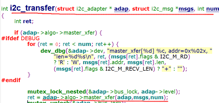 当注册了i2c_client从设备后,便可以使用i2c_transfer()来实现与设备传输数据了