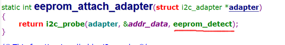 如下图所示,里面调用了i2c_probe(adapter, &addr_data, eeprom_detect)函数
