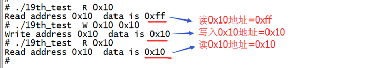 msg[0].addr=at24c02_client->addr; msg[0].flags=0; //写标志 msg[0].len =2; msg[0].buf =val; //写入要写的地址 数据 ret=i2c_transfer(at24c02_client->adapter, msg, 1); if(ret==1) //表示1个msg传输成功 { return 0; } else return -EAGAIN; } static struct file_operations at24c02_fops={ .owner = THIS_MODULE, .read = at24c02_read, .write = at24c02_write, }; /*2.定义i2c_client_address_data结构体,保存24C02的设备地址*/ static unsigned short ignore[] = { I2C_CLIENT_END }; static unsigned short normal_addr[] = {0X50, I2C_CLIENT_END }; static unsigned short force_addr[] = {ANY_I2C_BUS, 0x60, I2C_CLIENT_END}; static unsigned short * forces[] = {force_addr, NULL};