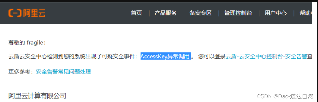 Accesskey隐患(附带一张近期我的Accesskey报警)——云安全