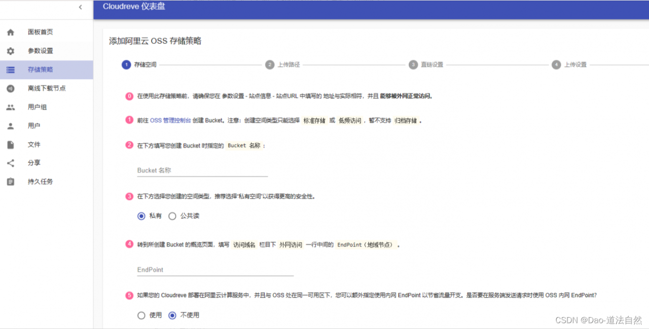 原理:数据以对象(Object)的形式存储在OSS的存储空间(Bucket )中。