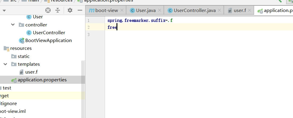 接下来就是创建一个实体类,一个Controller,还有一个模板引擎Freemarker