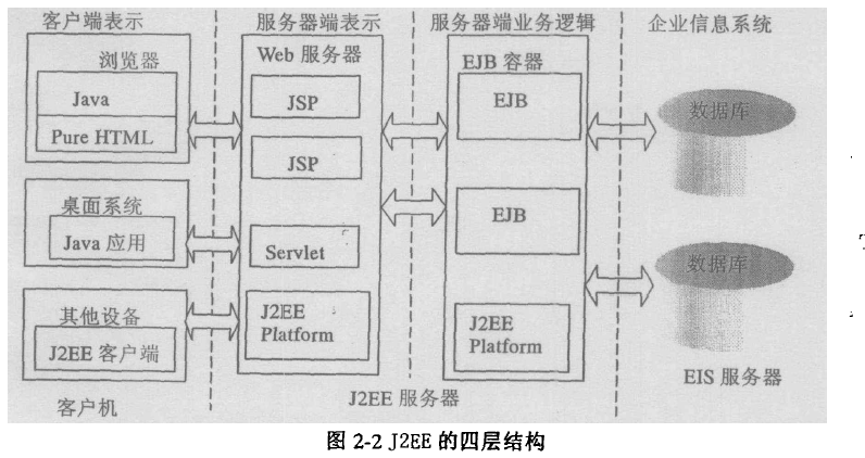 3、业务逻辑层运行在J2EE的EJB服务器中。其主要处理应用的核心业务逻辑。