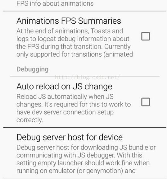 摇动手机,选择菜单:Dev settings,出现如下页面