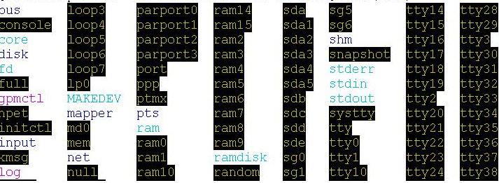 Linux下的各种硬件设备以文件的形式存放于/dev目录下,可以使用ls /dev 查看