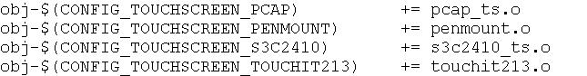 我们选择是否要编译s3c2410_ts.c这个文件时,makefile会根据CONFIG_TOUCHSCREEN_S3C2410来决定是编译此文件,此宏是在Kconfig文件中定义,当我们配置完成后,会出现在.config及autconf中,至此,我们就完成了整个linux内核的编译过程。