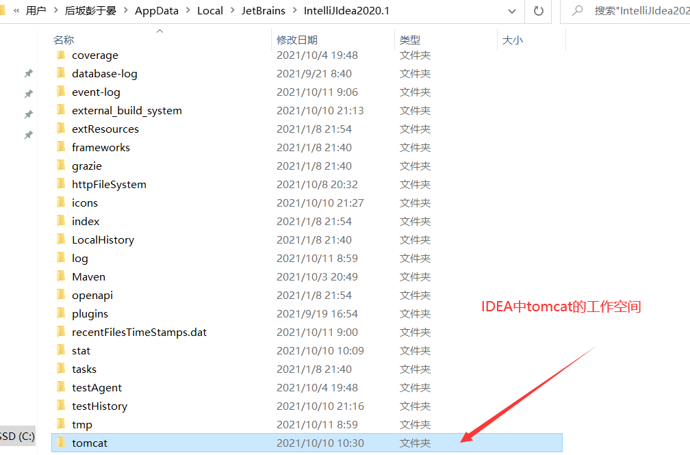 IDEA中使用Tomcat的会在IDEA的tomcat中产生一个work目录