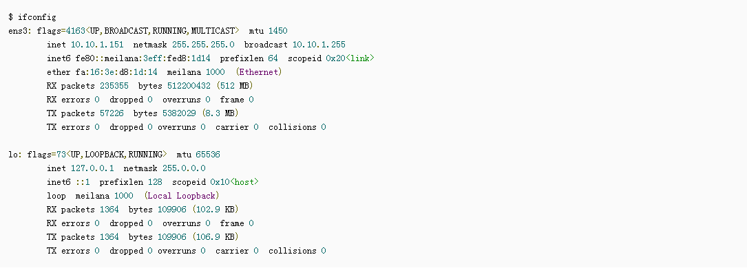 安装成功后,打开终端并运行ifconfig不带任何选项的命令,然后您将看到所有up接口,该接口是否具有Ip地址: