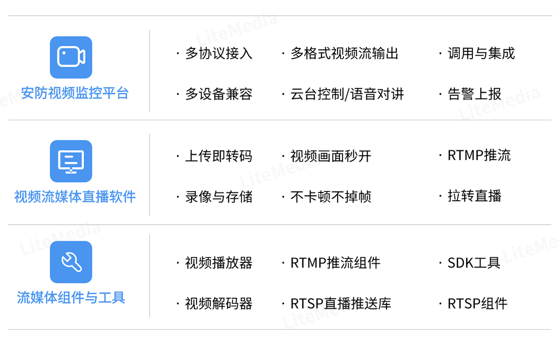 安防监控平台LiteCVR可拓展性强、视频能力灵活、部署轻快,可支持的主流标准协议有GB28181、RTSP/Onvif、RTMP等,以及厂家私有协议与SDK接入,包括海康Ehome、海大宇等设备的SDK等,能对外分发RTSP、RTMP、FLV、HLS、WebRTC等格式的视频流。