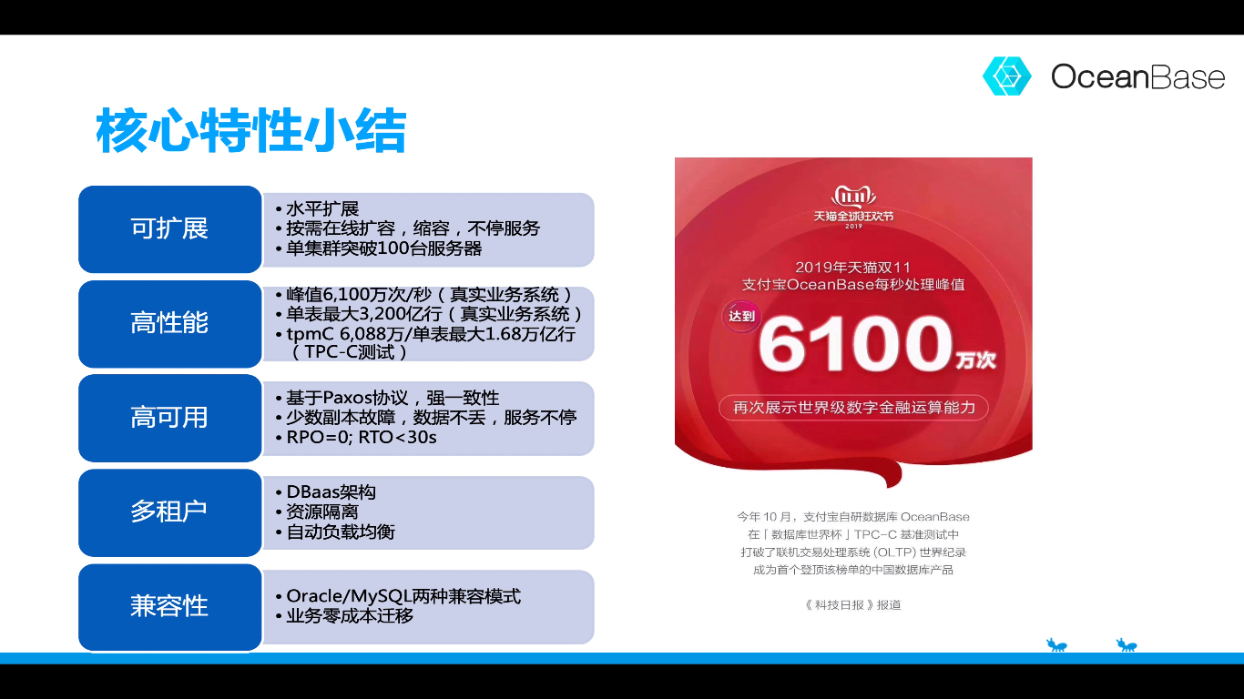 ob具备高可用性、线性扩展、低成本、高性能等核心技术优势
